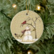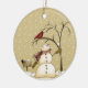 Whimsical Snowman and Red Bird Christmas Ceramic Ornament