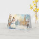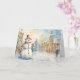 Whimsical Snowman in a Snowy Village Greeting Card