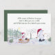 Whimsical and fun! Daddy snowman is pulling his little one on a sled as they go through the snow-covered woods looking for the perfect Christmas tree.