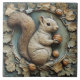 A charming ceramic relief featuring an adorable squirrel clutching acorns, surrounded by autumn leaves. This delightful piece brings a cosy woodland feel to any space.