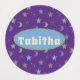 Sweet pattern features moons and stars in shades of green and blue on purple background . Personalise with name or monogram