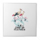 Whimsical Stork Pun Art - 'Look No Feather' Ceramic Tile