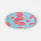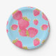 Whimsical Strawberry Pattern on Blue Paper Plate