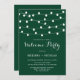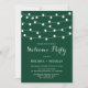 Elegant and whimsical welcome party invitation featuring white hanging fairy lights on an emerald green background. Personalise by adding your details. This emerald green welcome party invitation is perfect for weddings, conferences, and more.