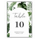 Whimsical Summer Tropical Leaves Script Wedding Table Number