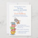 Whimsical bridal shower tea party invitation done in white with colourful stacked tea cups, on the bottom left side and on the back. Personalise the text to suit your event needs.