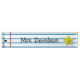 Fun school teacher's desk nameplate, with graphic lines of notebook paper and a smiling yellow star, on the far right side. Custom black text is ready to personalise. Makes a great gift idea.
