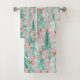 Whimsical Teal Christmas Trees on Pink Bath Towel Set