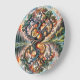 A clock featuring a pretty, vibrant tree design, with colourful branches and leaves in it's own reflection, making it a whimsical timepiece. (generated content)