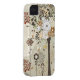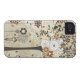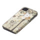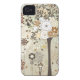 This case mate iphone 4 cover has a neutral brown, red, pewter grey, and tan whimsical nature floral pattern in the background with a tree that is covered in many flowers on the right.