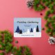 A card with blue winter skies and a forest of stylized trees. This cute design shows various shades of blue across the canvas as well as trees. The foil adds the final touch of sparkle (silver works well!) to the winter scene. Look for the matching envelope to complete your Christmas correspondence!