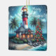 Whimsical Tropical Christmas Lighthouse Teal Red Ceramic Ornament