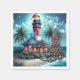 Whimsical Tropical Christmas Lighthouse Teal Red Napkin