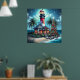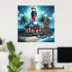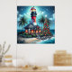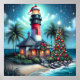 Whimsical Tropical Christmas Lighthouse Teal Red Poster