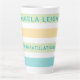 White with Beachy tropical shades of creamy lime, lovely limpet, and pastel marigold stripes. Personalised name. Simple, modern, trendy colours for 2025. Name enclosed with star icons, in a dark teal. Customise all colours in the design tool.