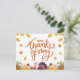 This cheerful Thanksgiving postcard features a whimsical turkey surrounded by vibrant autumn leaves and seasonal fruits. The bold orange "Happy Thanksgiving" text adds a playful touch to the design, making it a fun and festive way to send your holiday greetings. The colourful illustration captures the joy of the season, making this postcard a delightful keepsake for your loved ones.