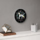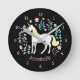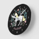 Whimsical Unicorn & Flowers Black Personalized Round Clock