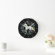This clock features a whimsical design with unicorn and flowers on a black background.