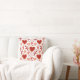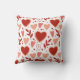 This fun throw pillow features whimsical heart pattern in red and pink.