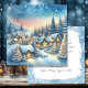 Personalised Christmas card. Ai illustration in a watercolor style of an enchanted whimsical little village in a winter wonderland.