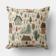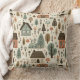 Cottage core throw pillows style village of cottages and trees, mushrooms, flowers in green, brown, and earthy tones.