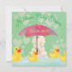 A vintage toy baby shower theme features a cute, Blue eyed, gender neutral baby with a cheery red umbrella. The baby sits among a flock of yellow rubber duckies in a sprinkle of pastel hearts and gentle rain. Available in a pink or blue or neutral theme along with an adorable collection of Baby shower decorations, baby shower games and baby shower favours for an original, whimsical welcome baby celebration.