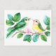 Whimsical Watercolor Birds on Leafy Branch Postcard