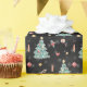 This wrapping paper features watercolor Christmas trees decorated with ornaments and lights on a dark background. The soft painted look adds a cosy, handmade touch to your holiday gifts.
