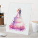Welcome your guests with the enchanting charm of this "Just Married" whimsical wedding sign. Featuring a vibrant watercolor illustration of a bride and groom standing atop a beautiful pink floral wedding cake, this sign brings a dreamy and artistic energy to your reception decor. The soft, bleeding colors and playful storybook aesthetic make it a stunning focal point for your entrance, sweetheart table, or cake display.