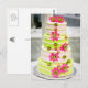 Whimsical and cheerful four-tiered, pink and green, traditional wedding cake adorned with flowers. Photo by Corey Balazowich
