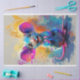 The abstract splashes of colour in the background complement his lively fur, creating a scene that’s bursting with creativity.