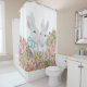 Whimsical White Bunny Rabbits, Pink Flowers Pastel Shower Curtain