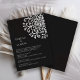 Celebrate your special day with a touch of elegance and sophistication with our unique and artfully designed wedding invitation. Featuring a pristine black background adorned with a mesmerizing white rotational symmetry pattern of swashes and dots making up a flowery pattern, this invitation beautifully captures the essence of timeless romance and modern charm.