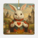 Whimsical White Rabbit Hearts Enchanted Wonderland Ceramic Ornament