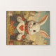 Whimsical White Rabbit Hearts Enchanted Wonderland Jigsaw Puzzle