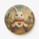 Whimsical White Rabbit Hearts Enchanted Wonderland Paper Plate
