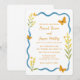 Invite guests with this charming butterfly garden wedding invitation, featuring whimsical orange butterflies, wild yellow florals, and a wavy blue border that mimics a gentle breeze. Perfect for a summer wedding in a botanical garden, meadow, or outdoor venue. The handwritten-style fonts and soft, cheerful palette set a romantic, nature-inspired tone. Easily customise with your names, wedding date, and location. Ideal for spring and summer weddings, especially those with a rustic, whimsical, or garden theme.