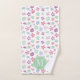 A modern whimsical floral patterned bath towel set. This delightful ensemble features a lively combination of blue, green, pink, and purple hued flowers, creating a refreshing and inviting atmosphere that instantly brightens up your space. Insert a monogram on the washcloth and hand towel.