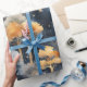 Beautiful watercolor art, winter holidays inspiration, night skies, golden stars ,forest landscape with deer.