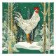 White Snowy Winter Forest and classic chicken, rooster - modern, whimsical Klimt-style housewarming gift for nature lovers.
