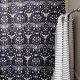 Delight in this witch's garden shower curtain pattern with all the ingredients for a whimsical spell. Mushrooms, bats, moths and stars entwine in a fun design that's as chic as it is droll! In dark, elegant midnight blue and cream to elevate your cottagecore bathroom decor.