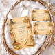 This enchanting baby shower design features a magical vintage storybook scene filled with charming wizard-inspired details. Delicate illustrations of potion bottles, spell books, antique keys, candles, and a wise little owl surround an ornate decorative frame, creating a whimsical atmosphere perfect for a magical celebration. The warm parchment background and soft watercolor textures give the design a nostalgic fairy-tale aesthetic inspired by classic fantasy illustrations. Ideal for wizard-themed baby showers, magical woodland celebrations, or whimsical fantasy gatherings welcoming a little wizard on the way.