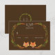 This charming wedding invitation collection features a well-dressed fox couple surrounded by a garland of hand-drawn leaves in a rustic wreath arrangement.