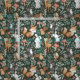 Adorable forest animals like foxes, raccoons, bunnies, squirrels, and a playful deer surrounded by soft greenery and mushrooms