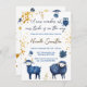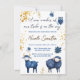 Celebrate the arrival of a little one with this whimsical celestial baby shower theme. A pure white background sets a peaceful tone, complemented by golden stardust accents for a touch of magic. The design features charming woodland animals, including a watchful owl, a gentle ram, and a sweet lamb, symbolising wisdom, strength, and innocence. Soft blue floral elements enhance the dreamy, elegant aesthetic, making this perfect for those who adore fantasy, nature, and celestial-inspired celebrations. With its starlit atmosphere and woodland charm, this piece is a beautiful way to welcome a new arrival.