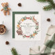 Whimsical Christmas Baby Shower invitation featuring adorable woodland animals, including a sweet deer, cuddly bear, and playful penguin, arranged in a festive wreath. The design is accented with soft pine branches, holly, dried oranges, and red berries, creating a cozy winter atmosphere. Perfect for celebrating a winter baby shower, this charming illustration blends gentle holiday magic, woodland warmth, and a joyful, family-friendly spirit with a touch of rustic elegance.