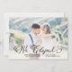 This elegant and trendy wedding elopement announcement features lovely black calligraphy over your personal wedding photo, and a soft pink watercolor wash on teh back.