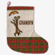 Cute Christmas stocking features a pair of wrenches with Santa cap on festive tartan background. Personalise for Dad, Grandpa or other "handyman" friends and family.