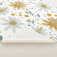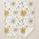 A charming botanical blanket featuring stylised yellow and white flowers with soft green-grey leaves, accented by abstract dots and shapes in yellow and black. The clean white background enhances its fresh, cheerful, and organic aesthetic—perfect for nature lovers, spring and summer themes, and whimsical floral themes.