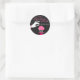 © 2012 Socialite Designs. Whimsical stickers design which incorporates a ladies hand adding a cherry to the top of an yummy and elegant cupcake on a stand. The background has a sassy zebra pattern.